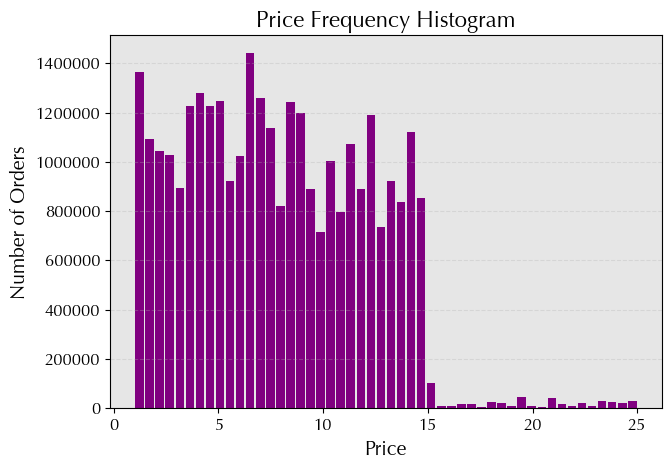 - User activity analysis: Examined variable frequencies to answer questions about user activity, such as most frequently ordered items or peak order times.