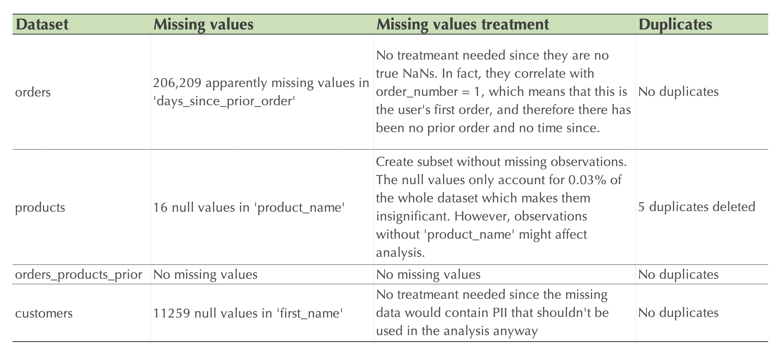 This project successfully cleaned, merged, and analyzed Instacart’s data, providing valuable insights into customer behavior and ordering patterns. Some of the key challenges during the analysis included: