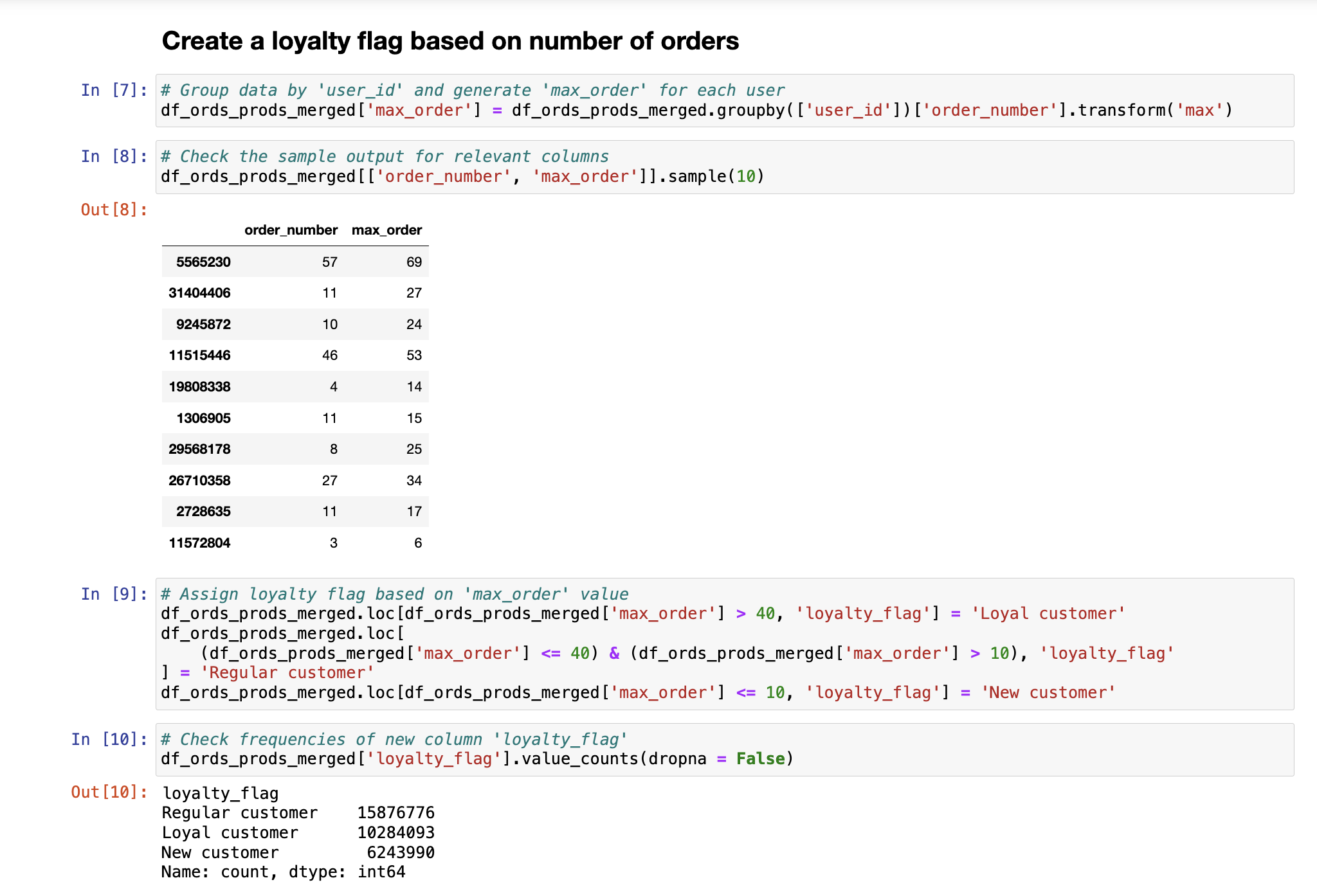 - Flag creation: New columns have been added, such as a loyalty flag for repeat customers.