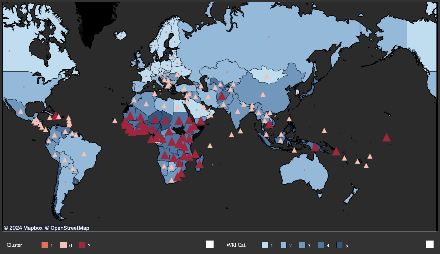Raw numbers can only tell part of the story. To get a clearer picture, I created geospatial visualizations for WRI, exposure, and vulnerability.