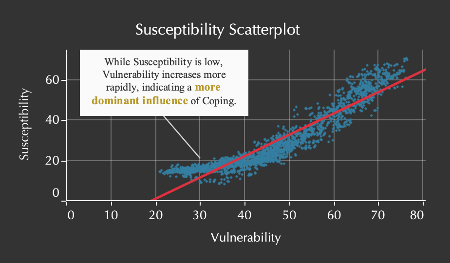 While linear regression proved the hypothesis that exposure significantly impacts the WRI, a closer look at the sub-dimensions of vulnerability – susceptibility and coping – revealed non-linear relationships.