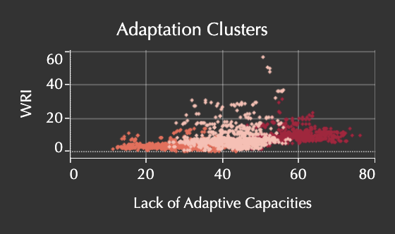 Using cluster analysis to explore risk profiles shaped by bimodal distributions and non-linear dynamics, I was able to identify distinct clusters based on vulnerability, coping, and adaptation.