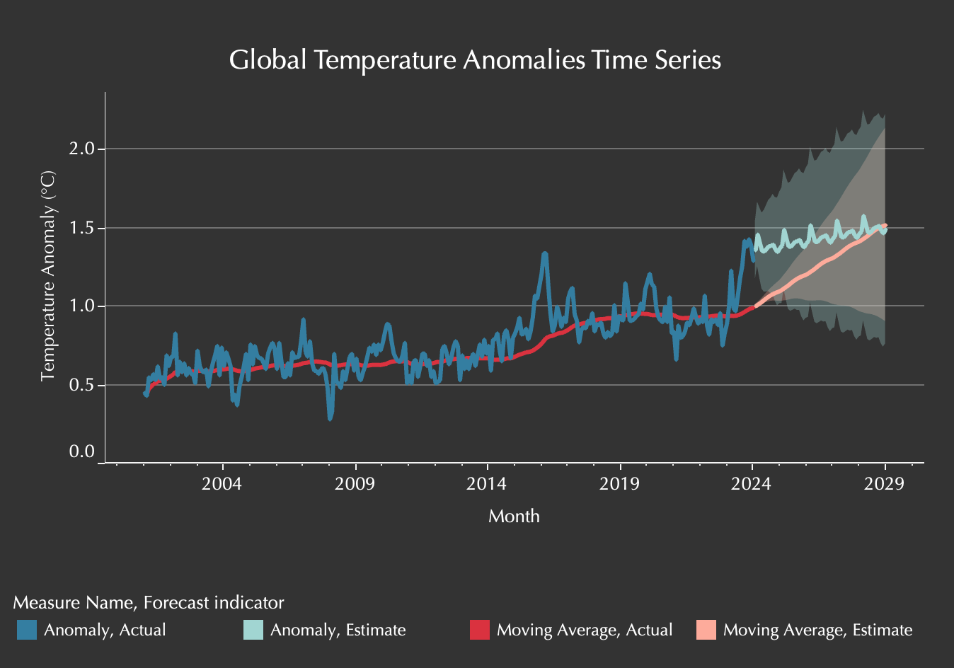 Unfortunately, the limited timeframe of the WorldRiskIndex data (annual since 2011) wasn’t suitable for time series analysis. However, recognizing that exposure is a key factor, I instead performed a time series analysis, including stationarity and differencing, on data on global temperature anomalies, a potential indicator of climate-related impacts.